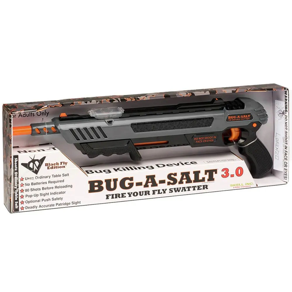 Het Bug-A-Salt BugBuster Black Fly 3.0 zoutgeweer ziet eruit alsof het zo uit een actiefilm komt vallen en brengt meteen een flinke dosis swag naar je woonkamer of tuin. Geen vlieg is meer veilig met dit wapen in huis. Die lelijke spin in de hoek of de slang bezoeker op je versgebakken appeltaart? Zwaai maar gedag, want met dit geweer ga je de strijd aan alsof je in een special ops-missie zit.