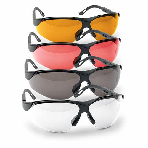 De bril is verkrijgbaar in vier uitvoeringen. Amber versterkt contrast en is de populairste keuze voor bewolkte dagen en binnenbanen. Clear is helder en neutraal, ideaal bij wisselende lichtomstandigheden of als je een universele bril wilt. Vermillion filtert blauw en groen licht, waardoor oranje doelen (kleiduiven) beter zichtbaar worden. Tint (Ice) is de getinte variant voor zonnige dagen.