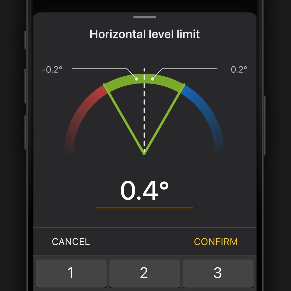 Cant fouten zijn op afstand een grotere bron van verticale missers dan veel schutters denken. Een paar graden tilt op 800 meter en je zit drie figuren naast het doel. De Pulse Pro heeft een digitale waterpas met kleur- én numerieke weergave, plus een instelbare groene zone voor je eigen tolerantie. De LEDs zijn fel genoeg voor direct zonlicht. Geen vergelijking met fiber optics. Daarnaast zie je real-time je loophoek voor cosine factor berekening.