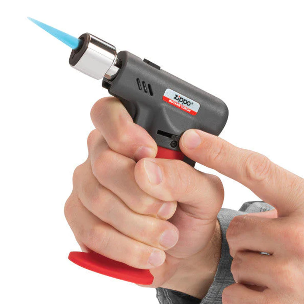 De Zippo Butane Torch levert de kracht en prestaties precies wanneer je die het meest nodig hebt bij het aansteken van het vuur, voor de roker of voor de pyro freak. De hufter proof gebouwde aansteke met piëzo ontsteking ontsteekt met gemak het gas en brandt sterk met een instelbare zachtgele of blauwe torch/brander vlam. Ideaal voor aansteken, solderen, verwarmen, smelten en ontdooien. De aansteker kan gevuld worden met Zippo butaangas voor de beste prestaties