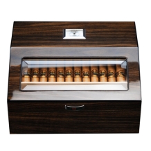 De humidor word geleverd inclusief bevochtiger, hygrometer en sigarenknipper.